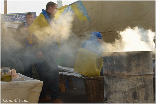 Le Maïdan qui m’avait enthousiasmé et séduit s’était évanoui. Pourtant je ne peux pas dire que je me sentais en danger sur la rue Krechtchatik ou sur Maïdan. Chacun était prêt à m’accorder du temps pour me parler dans mon russe balbutiant, je ne connais pas l’ukrainien, ou pour me donner plus d’explications en anglais. Pour mon plus grand malaise, tous me félicitaient d’être présent en tant que Français. Et moi, lorsque je les quittais, je marchais avec la honte de savoir que mon pays les abandonnait. Je n’avais plus de drapeau français. Je n’avais plus mes rubans tricolores de décembre. Seuls comptaient le bleu et le jaune. Les gens étaient toujours aussi accueillants et sympathiques, même si les regards étaient plus durs. De la révolution romantique, nous étions passés à la révolution du sacrifice.