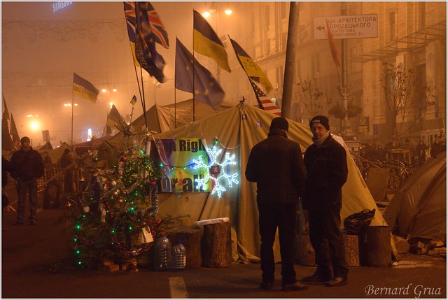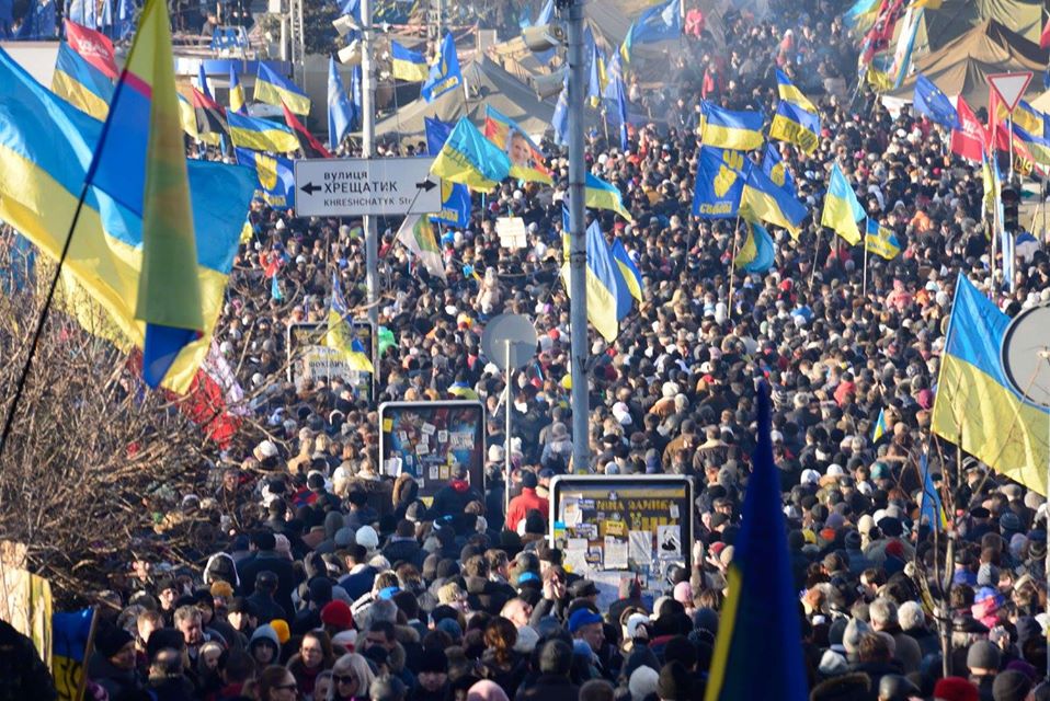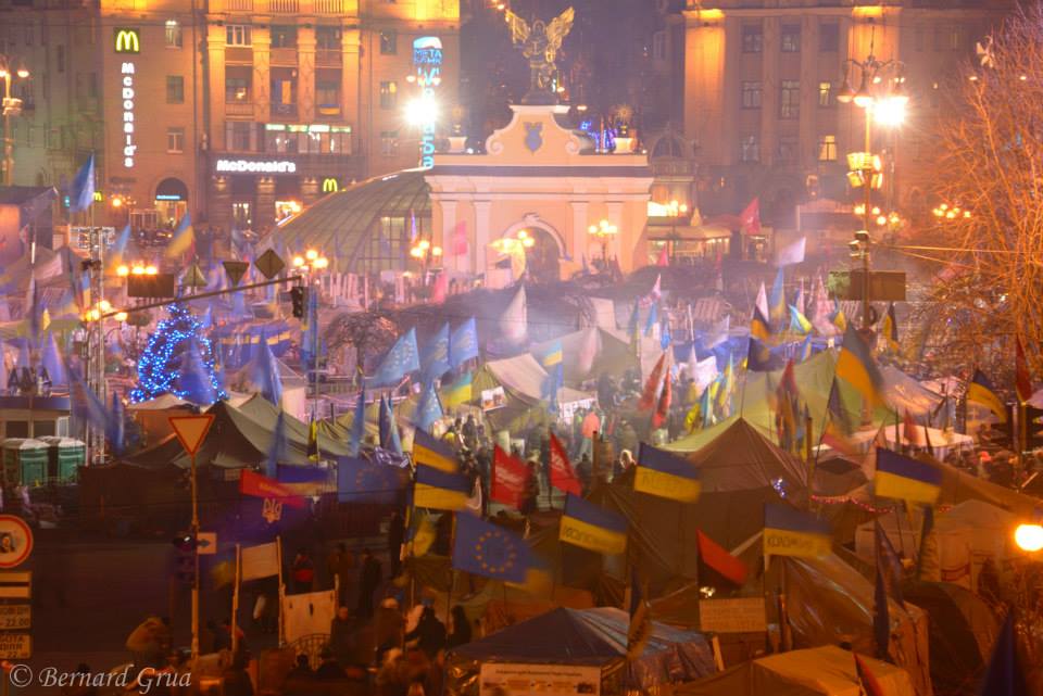 Le 22 novembre 2013 je suis tombé sur la une du journal le Monde : « L’Ukraine tourne le dos à l’Union Européenne » en dénonçant, la veille, l’accord d’association dont la signature était prévue pour la semaine suivante. Je savais que c’était faux. Il ne s’agissait pas de l’Ukraine mais du clan Ianoukovitch à la tête du pays. La jeunesse ukrainienne, même si elle n’avait pas participé à la « révolution orange », en avait retenu les fruits amers ainsi qu’une absence totale de confiance en sa classe politique. Plus que les bienfaits matériels immédiats de l’Europe, elle savait qu’il y aurait un ajustement douloureux, cette nouvelle génération en attendait une contrainte externe sur la gouvernance nationale. Seule une pression européenne, pensait-elle, était en mesure de conduire son pays à respecter ce qui allait permettre de le sortir du sous-développement où il s’enfonçait. J’ai tout de suite pensé que cette jeunesse allait s’enflammer. De fait le mouvement avait déjà commencé dans les universités, dès le 21 novembre, aux cris de « A Maïdan! ». « Maïdan Nézalejnost » est la grande place de l’Indépendance, à Kiev. Le 24 novembre j’étais à la première manifestation française d’Euro Maïdan sur le parvis des droits de l’homme, à Paris.