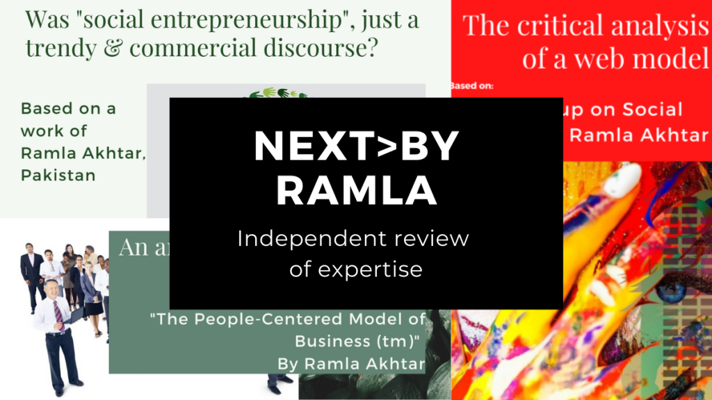 “NEXT> by Ramla” was an independent consulting firm belonging to Ms Ramla Akhtar (naming herself, nowadays, Rmala Aalam). The above presentation is also part of the review done for her area of expertise and her commercial services.