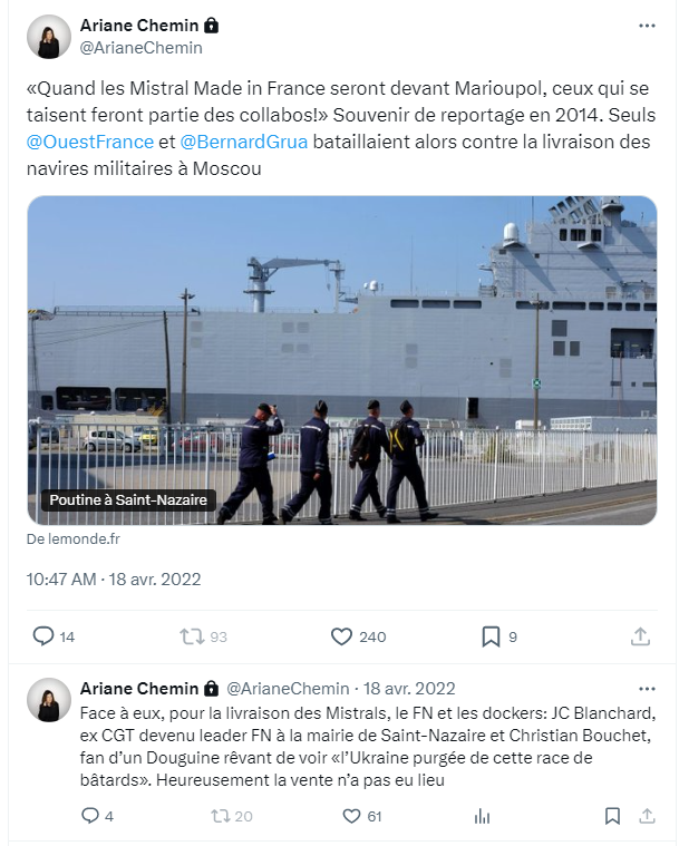 Lire plusSabordage des Mistral: les métastases de la maskirovka Kremlin – Front National dans les médias occidentaux