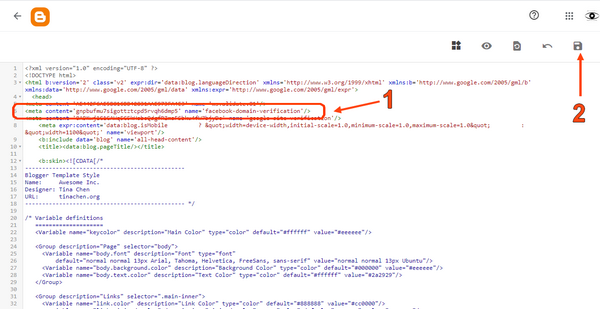 Vous allez coller le « Meta-Tag » de Facebook dans le code votre site Blogspot. Puis vous allez confirmer.