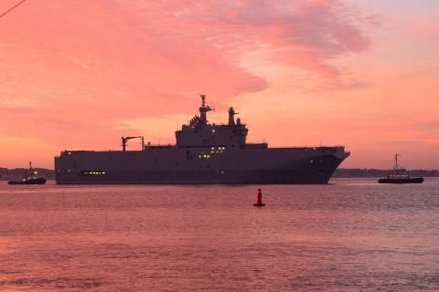 Photo de la sortie confidentielle du Mistral russe pour essais – 15.09.2014