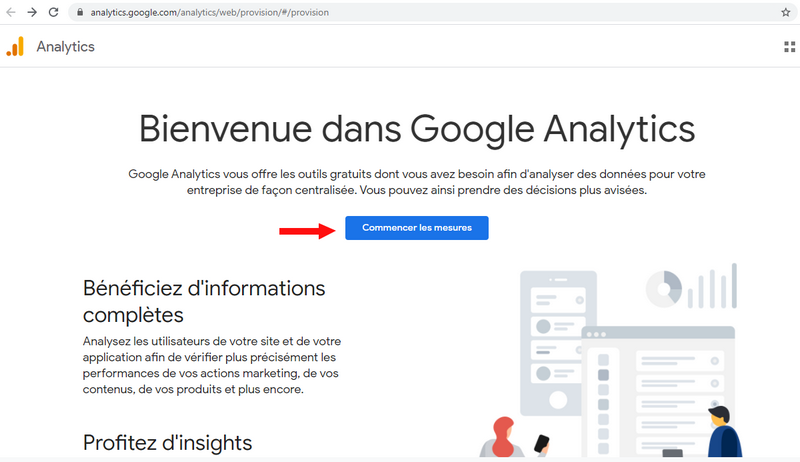 Donnez les informations que vous voulez à Google Analytics pour accéder à la page suivante.
