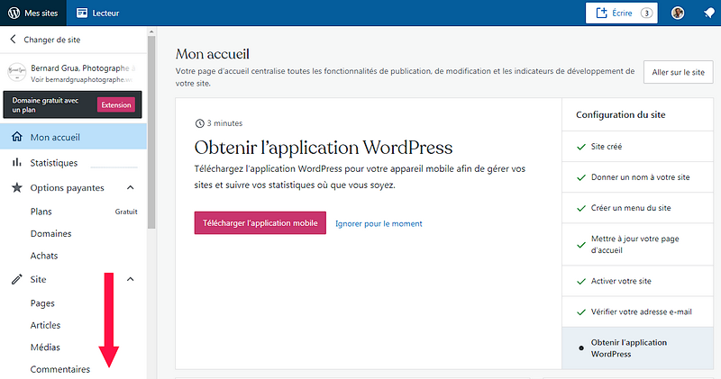 2.1. WordPress: ouvrez l’éditeur de votre site sur « Trafic ».