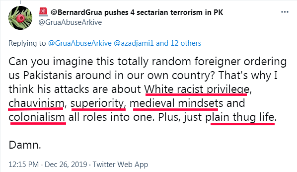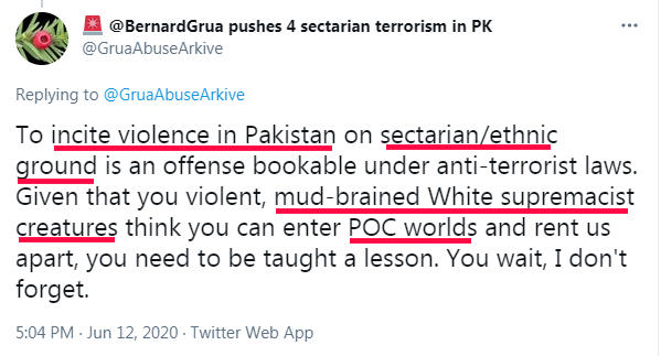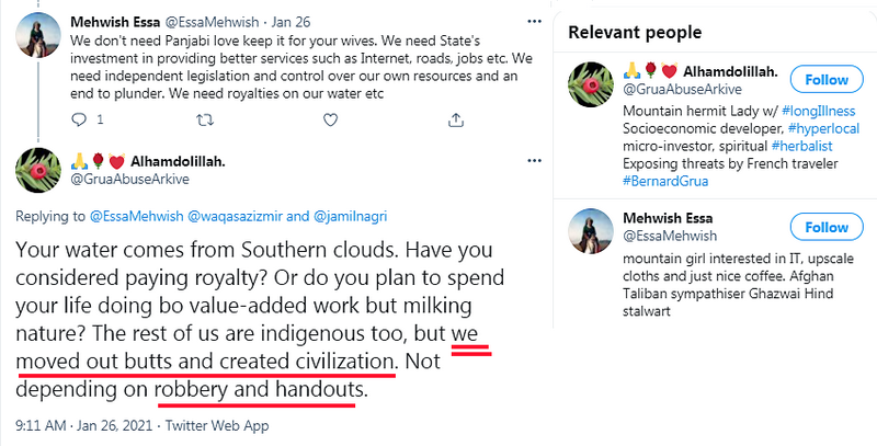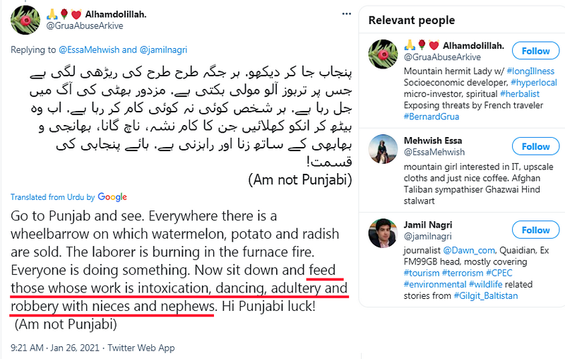 Dans ce fil Twitter, Ramla Akhtar exprime son racisme contre les habitants du nord Pakistan.