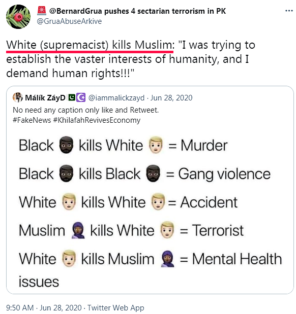 Les trois personnes précédentes ont, bien évidemment, bloqué Ramla Akhtar sur Twitter. Mahrukh Beyg et Alam Jan Dario n’ont jamais répondu ni même envoyé un seul tweet à Ramla Akhtar. Mais ces deux derniers n’ont pas, non plus, évité sa malfaisance. Ainsi, les recommandations habituellement données (bloquer et ne pas répondre) sont inopérantes, lorsqu’un utilisateur de réseaux sociaux décide réellement de nuire à des victimes clairement identifiées.