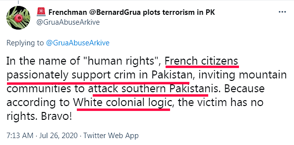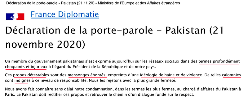 La France est une cible privilégiée des partis islamistes pakistanais, tel le Tehreek-e-Labbaik, et des dirigeants du « pays des purs ». Cette propagande s’est intensifiée depuis septembre 2020, alors que le Premier ministre, Imran Khan, s’en est pris régulièrement et violemment au Président français (lire: « Pakistan et Turquie : Quand des gouvernements deviennent les parrains de la menace terroriste !« ). Le ministère des Affaires étrangères de la France a été conduit à publier, à ce sujet, deux communiqués particulièrement réprobateurs contre la ministre pakistanaise des « Droits de l’homme », Shireen Mazari, et contre le président pakistanais, Arif Alvi. Le stances de Ramla Akhtar, contre la France et contre les Occidentaux, y trouvent un environnement très favorable.