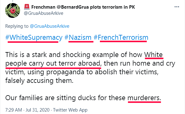 Suprémacisme blanc, nazisme, terrorisme français, peuples blancs exportant le terrorisme, meurtriers