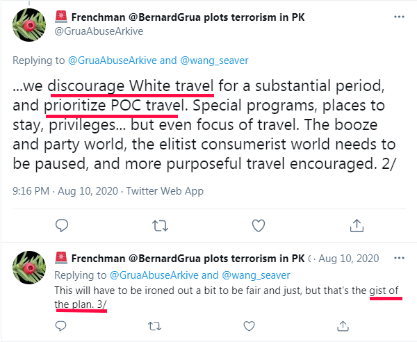 Ramla Akhtar veut décourager, au Pakistan, les voyages des blancs pour les remplacer par des POC (People of Color – gens de couleurs), c’est-à-dire des touristes du sud Pakistan. Pour ce faire, elle habille son racisme de populisme et d’environnementalisme. Notez le « We » (nous).