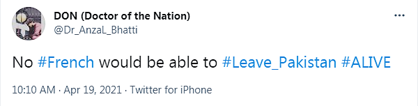 Comme le dit, aujourd’hui, Imran Khan, le départ de notre ambassadeur aurait des effets en cascade aggravant un peu plus la ruine du Pakistan. Prenons-le au mot. Ne serait-ce que pour lui faire perdre un peu plus la face dans ce pays où les apparences comptent plus que la réalité des faits. Ainsi, nous devons effectivement quitter ce pays comme je le suggérais le 16 avril 2021 Pourquoi la France a intérêt à fermer son ambassade au Pakistan ? Nous pouvons dire que ce départ se fait à la demande de la population, suite aux positions répétées d’Imran Khan contre notre pays. Ce qui est parfaitement exact. Car, comme on l’a vu, même ceux qui s’opposent aux émeutes du TLP veulent, eux-aussi, le renvoi de notre représentant à Islamabad