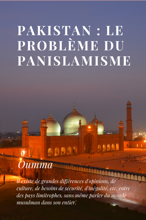 Le panislamisme fait beaucoup de mal au Pakistan. L’Islam devrait (et voudrait) dépasser les frontières en tant que force unificatrice de croyances et de morales partagées, y compris avec les non-musulmans. Cette connexion spirituelle/morale devrait se limiter à l’oumma.[note : c’est-à-dire, selon l’auteur, ne pas intégrer le panislamisme, qui est politique]