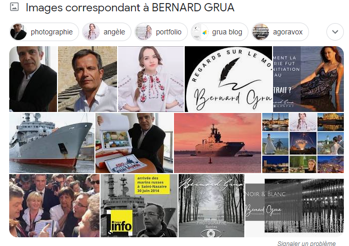 Ainsi, en août 2015, la photo suivante s’est trouvée positionnée en premier résultat. Elle conduisait à un article diffamatoire publié par un activiste d’extrême droite pro-Poutine. Cette image était particulièrement pertinente pour Google en ce qui concerne une recherche pour « Bernard Grua ». Mon nom apparaissait dans le titre et dans l’URL de l’article. La photo montrait clairement mon visage. La photo servait de couverture à l’article, qui était à mon nom. Son choix comme première image de réponse de Google était donc logique.