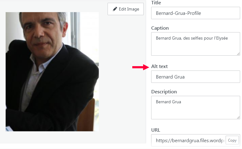 Ceci est une indication cruciale pour Google. Mon diffamateur l’a nommée: « Sélection_454.png ». Je l’ai nommée: « bernard-grua-profile-1.png ». C’est infiniment plus parlant pour Google.
