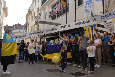 Manifestation du 27/03/2022: "Soutien à la résistance ukrainienne", "Non à la propagande russe", Rue Crébillon, Nantes  - Photo: Bernard Grua
