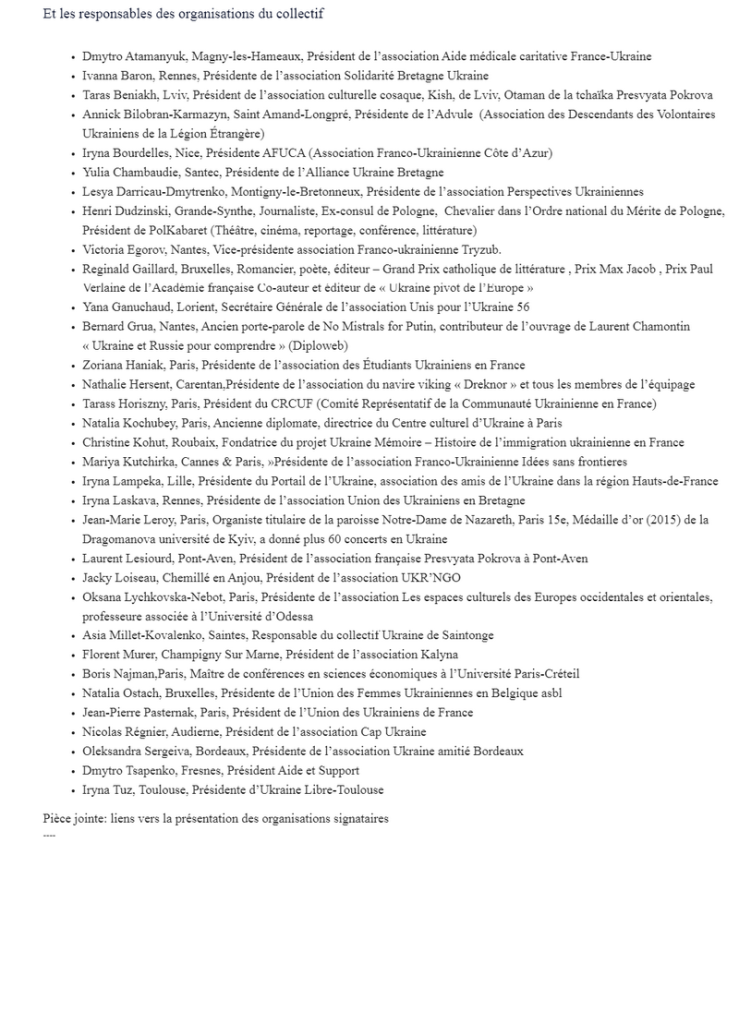 - Victoria Egorov, Nantes, Vice-president of association Franco-ukrainienne Tryzub.
