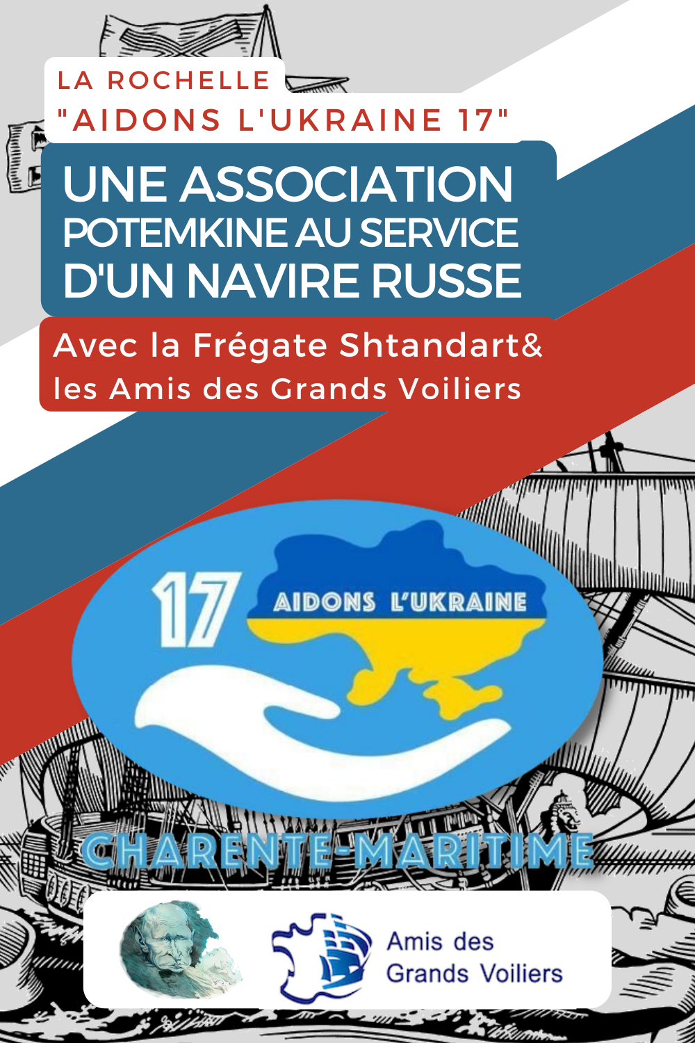 Aidons l’Ukraine 17 est une des chevilles ouvrières du discours de Michel Balique, président de l’association des Amis des Grands Voiliers, de Ludovic Pacciarella, « officier de liaison » du Shtandart et président de l’association Aidons l’Ukraine 17, de Jean-Baptiste Dagreou, trésorier de l’association Aidons l’Ukraine 17, de Patrice Bernier, maître de port principal du port de plaisance de La Rochelle et de Vladimir Martus, capitaine-propriétaire du Shtandart.