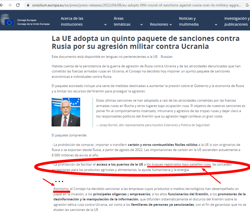 Gracias por haber anunciado nuestro evento y por haber dado la posición oficial del alcalde de La Rochelle así como la del prefecto de Charente-Maritime sobre el asunto del barco ruso Shtandart. Así, durante nuestra reunión del domingo pasado, al leer la quinta parte de las sanciones (archivo adjunto), todos, excepto por desgracia, el periódico Sud Ouest, pudieron ver la naturaleza infundada, si no desconcertante, de sus justificaciones. Queda la pregunta que se hace, que es la de conocer los intereses, posiblemente personales, a los que sirven estas dos personas perseverando de esta manera, en el engaño prorruso y la ilegalidad. Este es un buen tema para investigar.