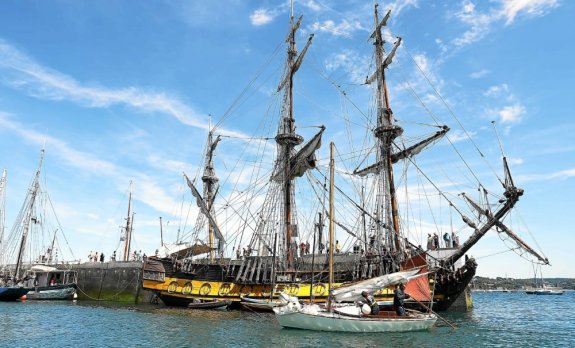 « Dans l’après-midi, le groupe de militants, dont une majorité de personnes extérieures à la presqu’île de Crozon (NDA: des Ukrainiennes, un Ukrainien et un breton, du Finistère sud et de Brest), s’est rassemblé devant cette réplique d’un navire de guerre russe du XVIIIe siècle, pour dire leur mécontentement de voir le pavillon ukrainien hissé au côté de celui de la Russie. « Il est insupportable pour des Ukrainiens de voir leur pavillon national exhibé, comme un trophée, par un navire aux couleurs du pays qui les envahit » rapporte l’un des militants, Bernard Grua, sur son compte Twitter » (Carole Tymen.Ouest-France, le 16/08/2022)