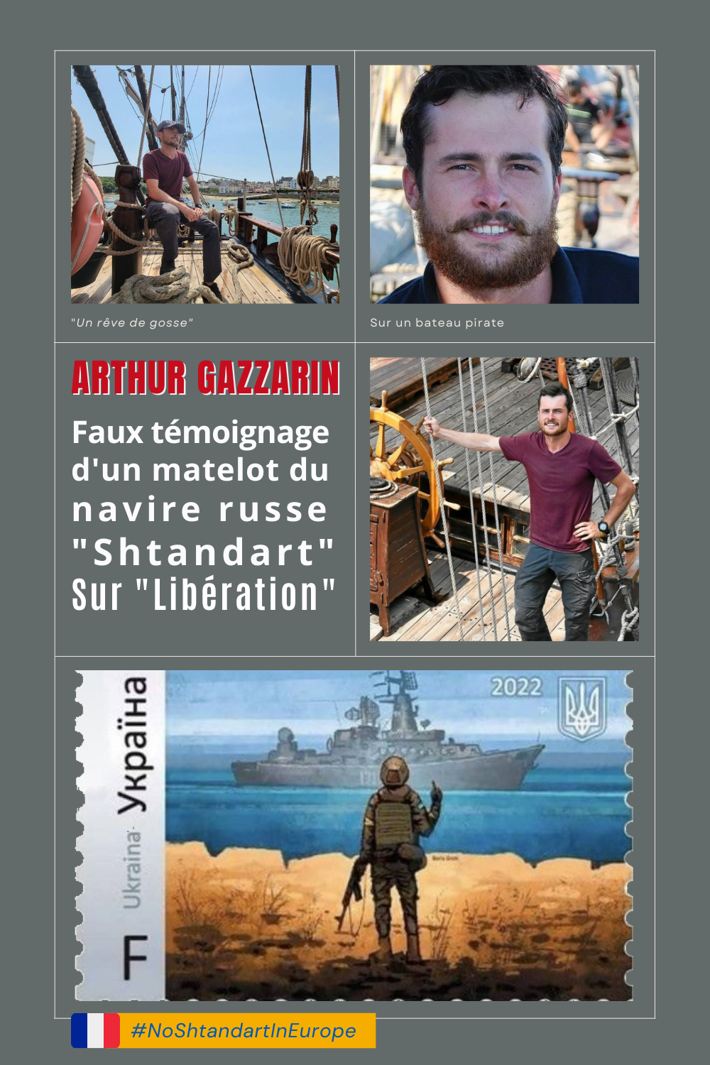 Arthur Gazzarin matelot douarneniste du Shtandart est interviewé le 12 janvier 2023. Il produit un faux témoignage auprès du journal « Libération » concernant les Ukrainiens qui s’opposent au viol des sanctions européennes par le navire russe. Il prétend qu’à Camaret le navire a été investi de force, que l’équipage a été insulté ainsi que victime de violence et que la délivrance est venue des forces de gendarmerie. Tout ceci est contraire aux témoignages des participants, de la presse et de la gendarmerie. Une plainte pour diffamation a été déposée auprès du procureur du TGI de Quimper contre Gazzarin et « Libération ».