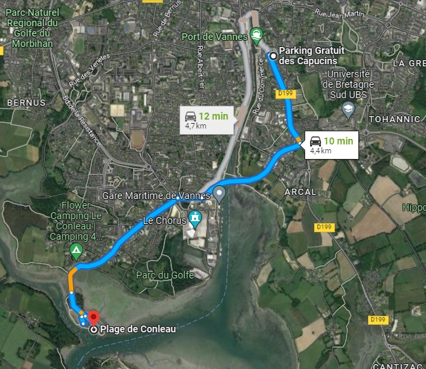 - Pique-nique sur la plage de Conleau, avec tables et bancs pour s’installer.