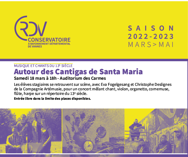 Après la manifestation pour l’application des sanctions, après le pique-nique à Conleau ou après la visite de la ville historique, il sera possible d’assister gratuitement à un concert de musique médiévale, à 18:00, à l’auditorium des Carmes, près du port.