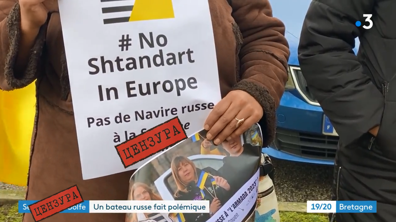 Vladimir Martus et son navire, le Shtandart, se jouent des sanctions européennes avec l’aide d’un puissant réseau d’influence franco-russe. France 3 a rendu compte, le 18 mars 2023, du rassemblement vannetais de représentants du collectif #NoShtandartInEurope devant les bureaux de la « (censuré) ». Les organisateurs du festival étaient exhortés à respecter le règlement UE interdisant la présence de tout navire russe dans les ports européens. France 3 s’est aussi fait l’écho des justifications de (censuré) et de Vladimir Martus.