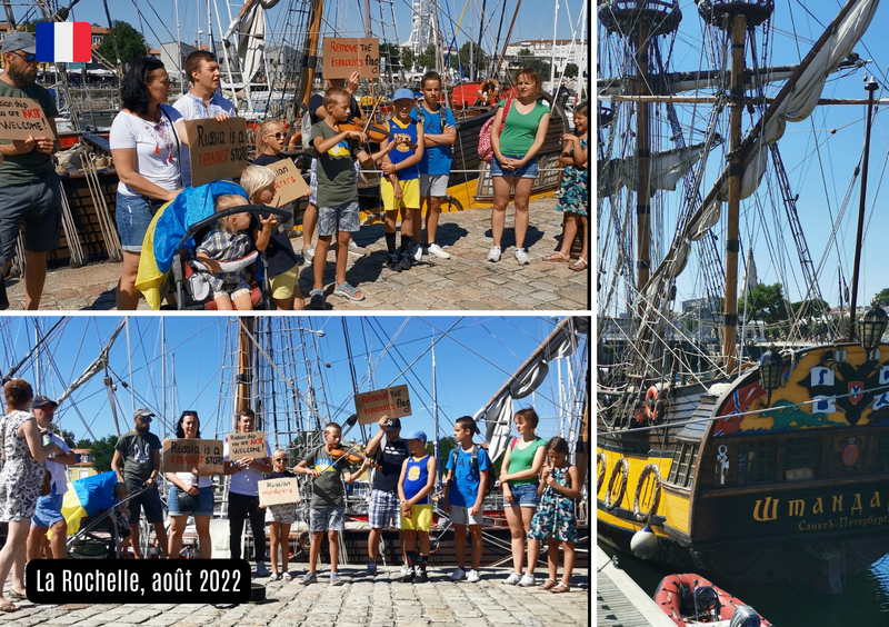 In 2022, many demonstrations were held in the port of La Rochelle, in front of the Shtandart, against Russian ship presence in France.