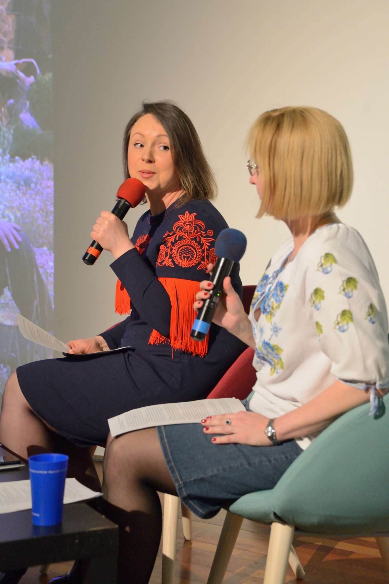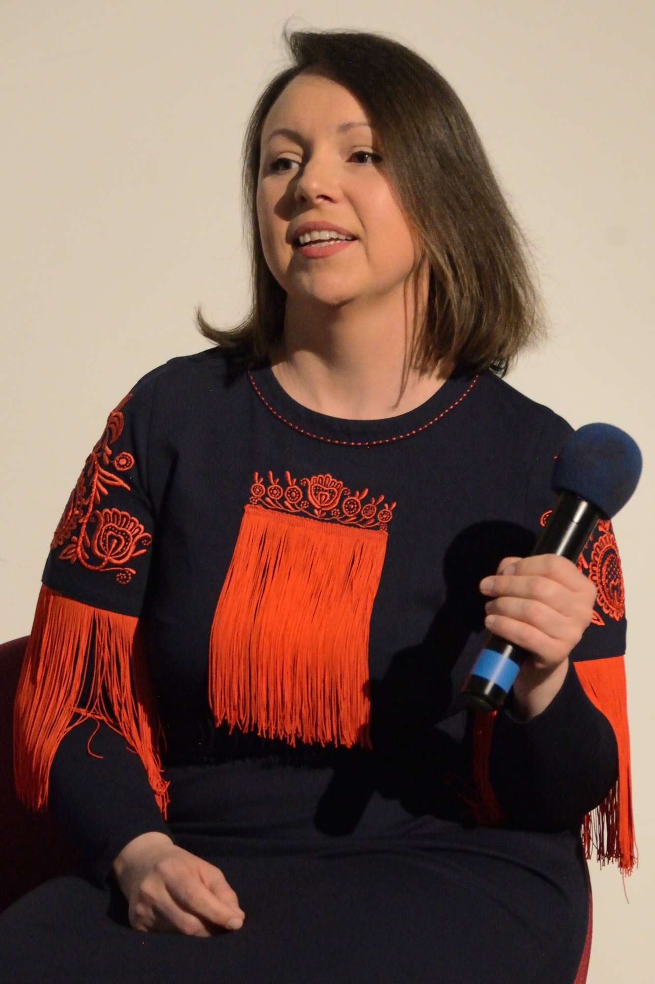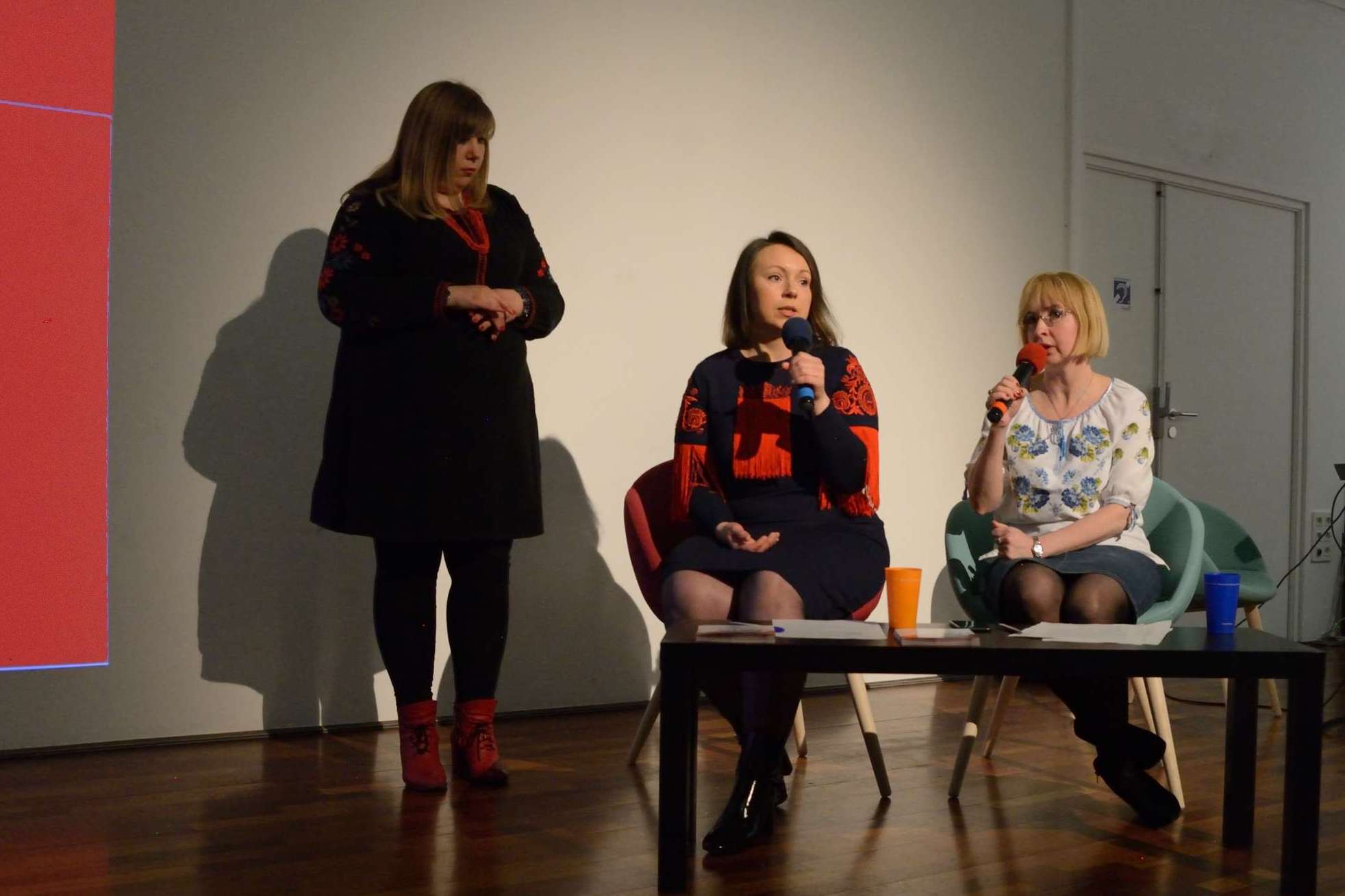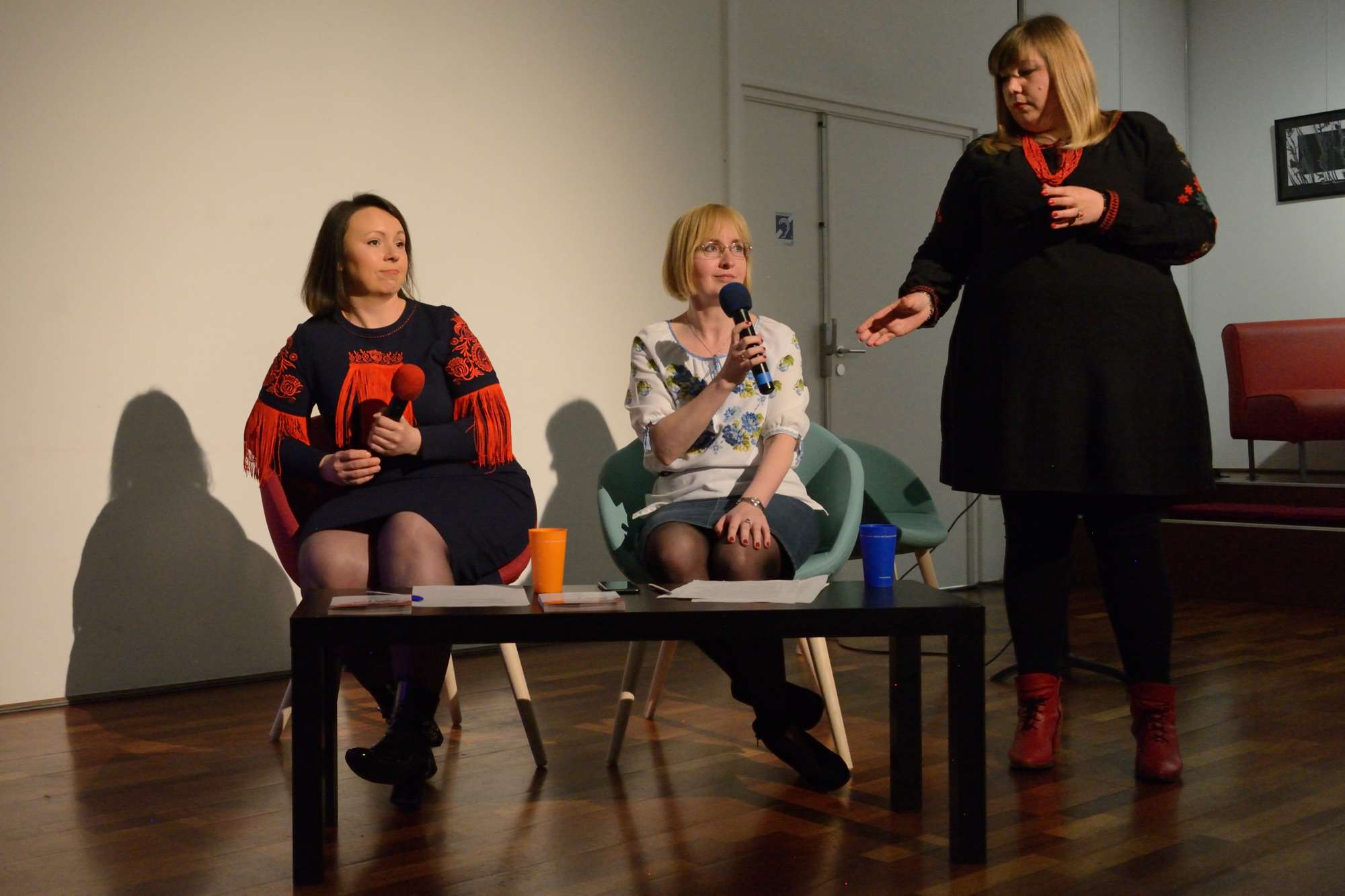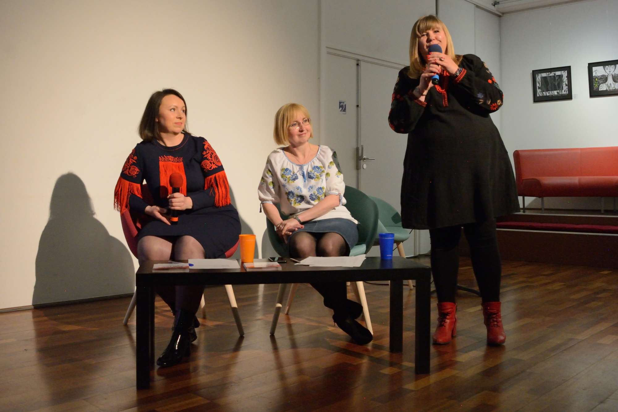 Aujourd’hui, les broderies sont un élément d’identification nationale et inspirent les créations contemporaines, dont celles d’Olesya Telizhenko. Une partie d’entre elles resteront exposées à l’espace Cosmopolis jusqu’au 7 mai 2023. La conférence était traduite en français par Victoria Nikolenko, résidente nantaise, docteure en sciences du langage, Vice-présidente de Tryzub.