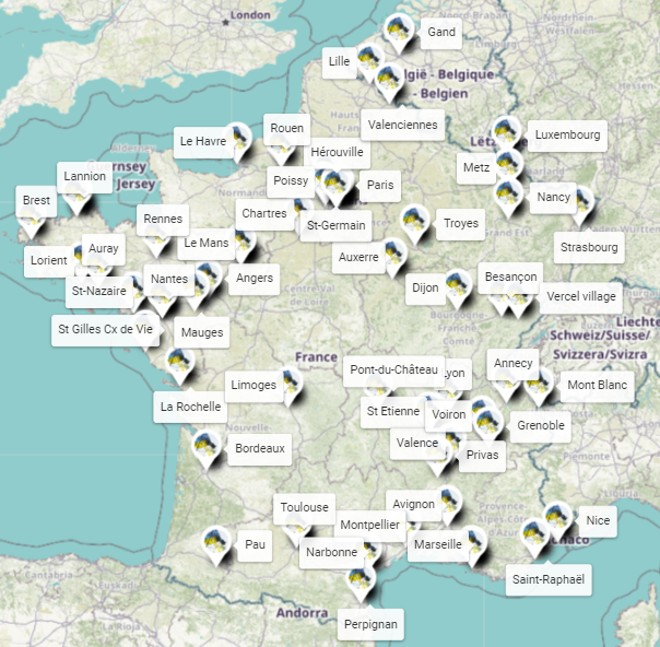 Carte interactive des événements du collectif national « Ensemble le 24 février / Разом 24 лютого »