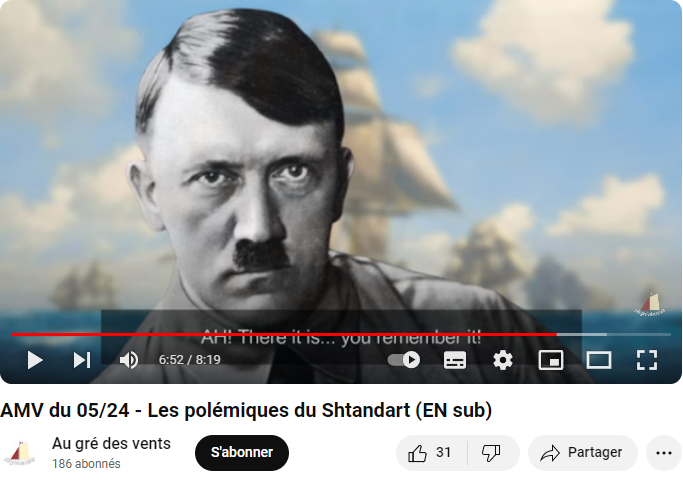 À coup de « polémiques », le Shtandart est donc en « Opération militaire spéciale » de « dénazification » contre « les extrémistes » qui demandent l’application des sanctions au navire russe. La vidéo est visible et son texte intégral peut être lu ici : https://bit.ly/shtandart-au-gre-des-vents
