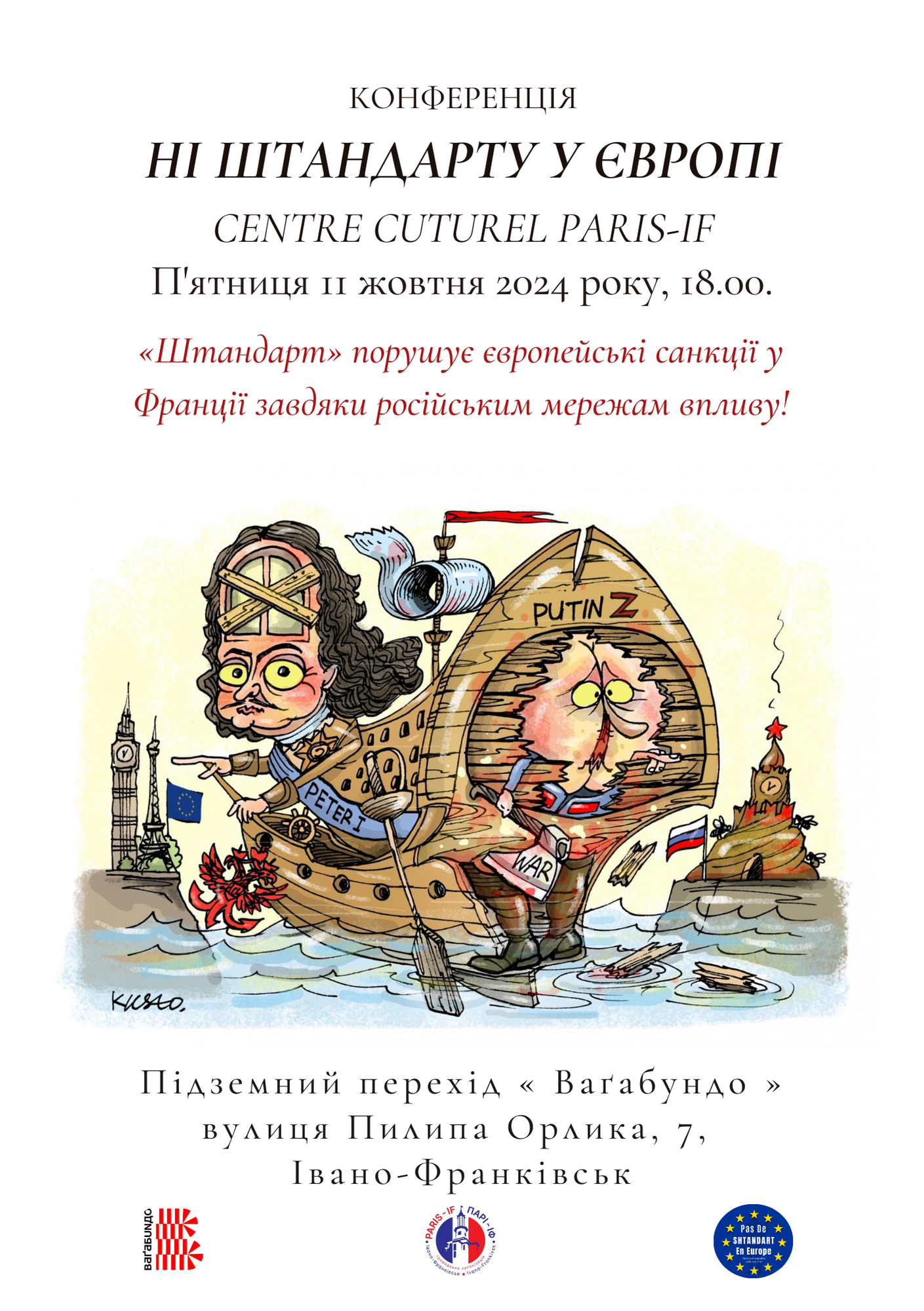 La conférence organisée par Sergii IEROMIN, responsable du centre culturel Paris-IF, sera animée par Bernard GRUA, un Breton nantais, fondateur et porte-parole du collectif international « No Shtandart In Europe ». Les thèmes suivants seront développés :