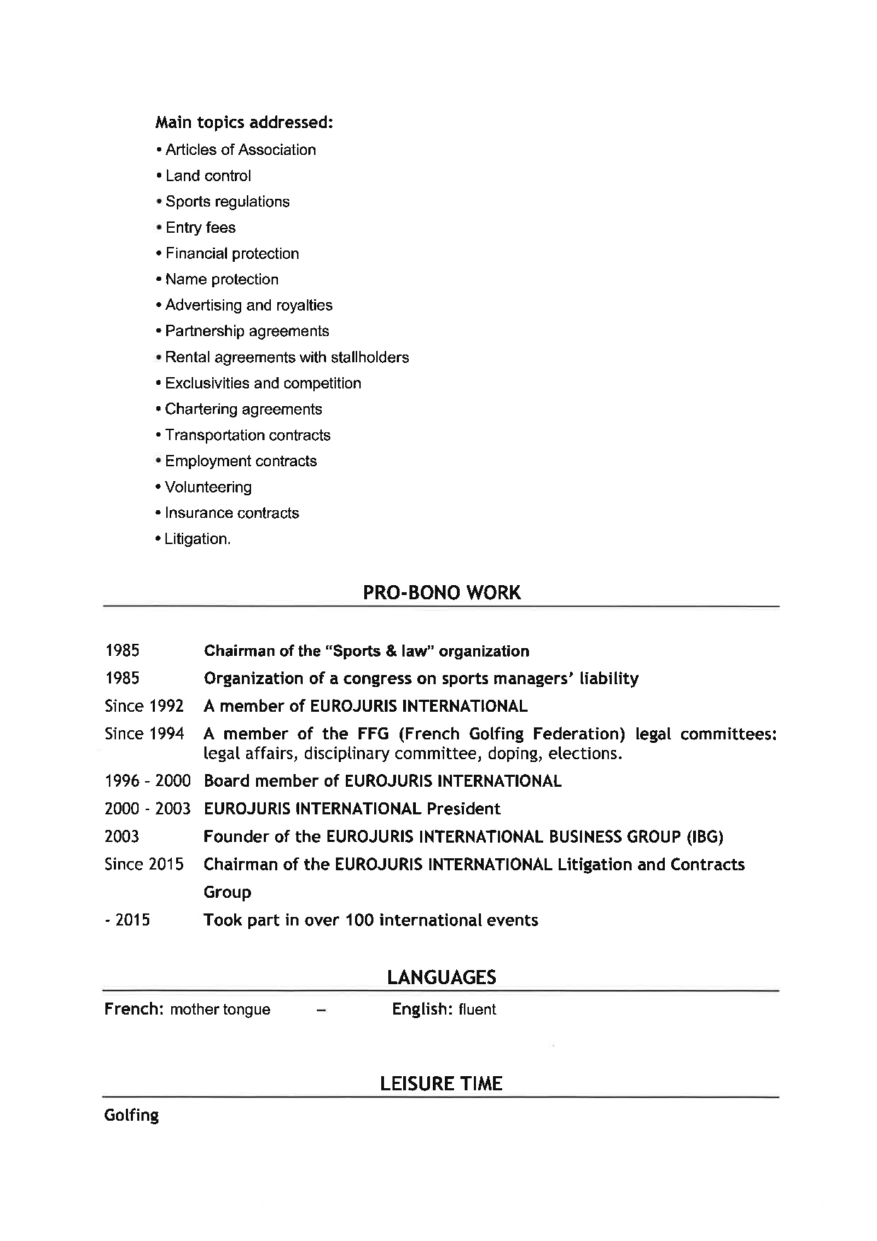 - Assistance juridique dans le cadre du développement d’un club de golf (statuts, contrats)