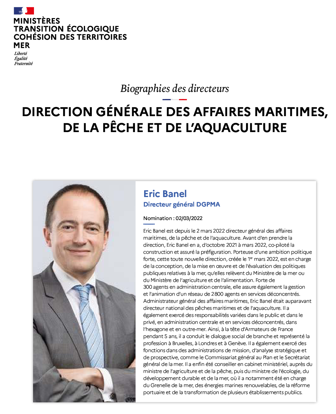 De: BANEL Eric (Directeur général des affaires maritimes, de la pêche et de l’aquaculture) — DGAMPA/DIRECTION eric.banel@mer.gouv.fr