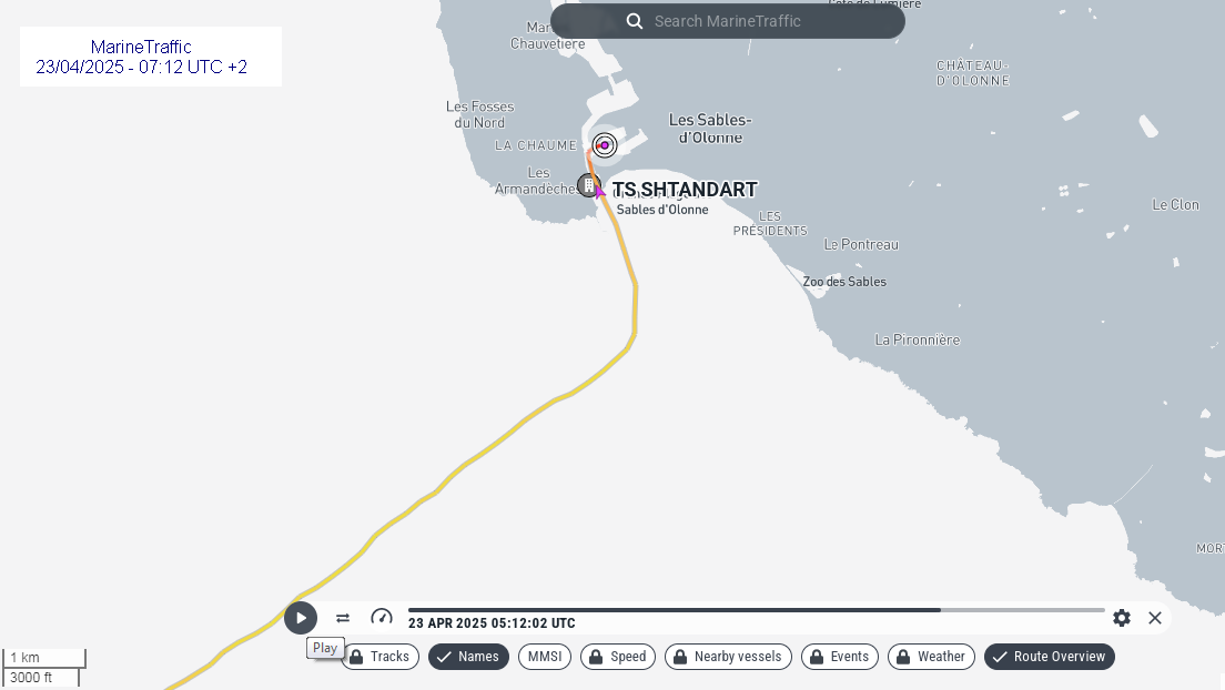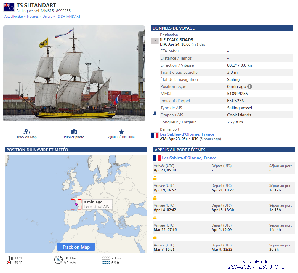 Objet : alerte sanctions, navire russe « Shtandart », ce jour, le 23/04/2025, dans le port des Sables-d’Olonne