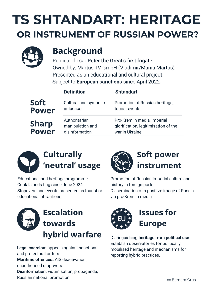 Beyond the specific campaign of the Shtandart, this study highlights a major challenge for Europe: its capacity to identify and regulate often underestimated or ignored geopolitical uses. In a context of disinformation and hybrid warfare, culture becomes a fully-fledged field of strategic confrontation.