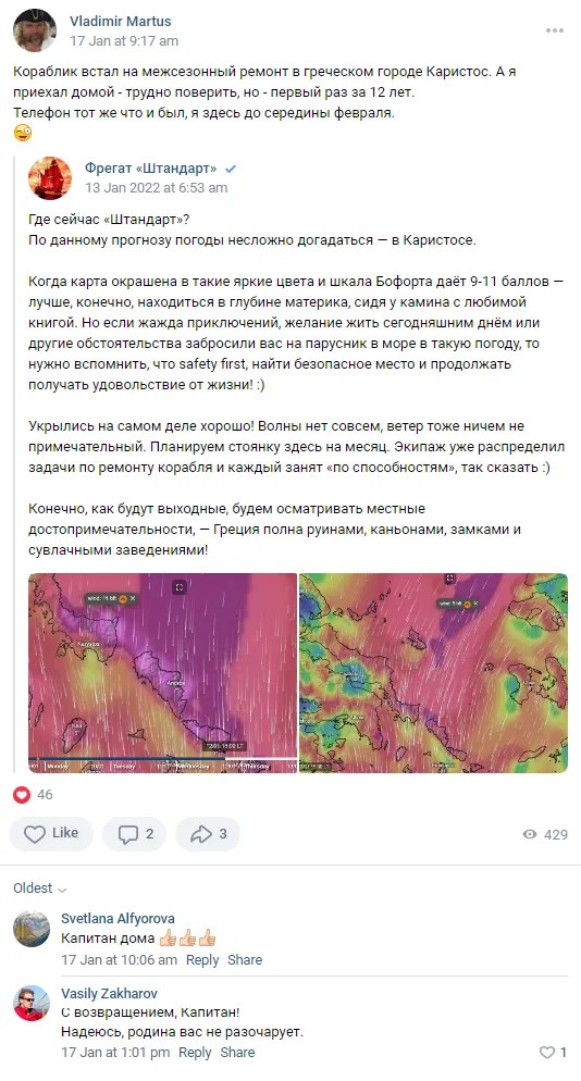 In 2009, the Shtandart sailed off the Russian coast due to violations of Russian security regulations. It probably remained abroad for business purposes, or possibly for additional reasons. Vladimir Martus claims he left Russia because he opposes the Russian regime. However, Russian evidence does not support this claim. See: “Shtandart”, 2009, Vladimir Martus’ refusal to comply with safety regulations falsely presented as political opposition to Putin’s regime.” (en)4