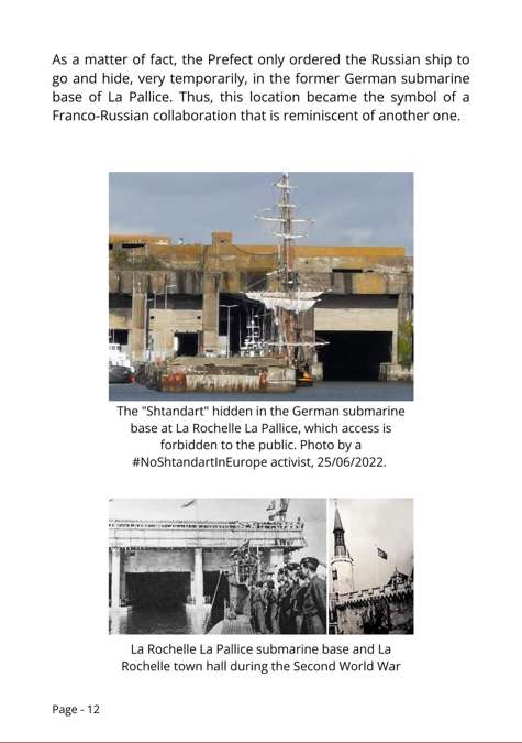 As a matter of fact, the Prefect only ordered the Russian ship to go and hide, very temporarily, in the former German submarine base of La Pallice. Thus, this location became the symbol of a Franco-Russian collaboration that is reminiscent of another one.
