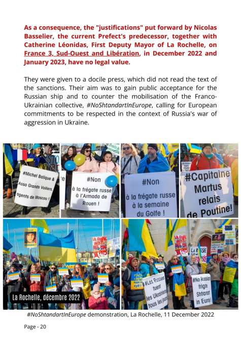 As a consequence, the « justifications » put forward by Nicolas Basselier, the current Prefect’s predecessor, together with Catherine Léonidas, First Deputy Mayor of La Rochelle, on France 3, Sud-Ouest and Libération, in December 2022 and January 2023, have no legal value.