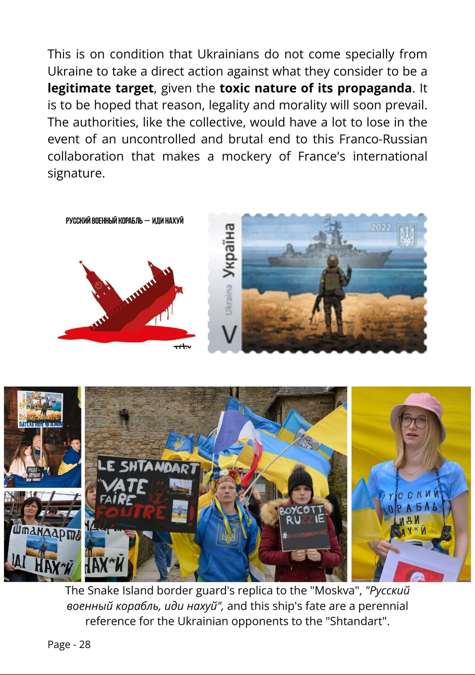 This is on condition that Ukrainians do not come specially from Ukraine to take a direct action against what they consider to be a legitimate target, given the toxic nature of its propaganda. It is to be hoped that reason, legality and morality will soon prevail. The authorities, like the collective, would have a lot to lose in the event of an uncontrolled and brutal end to this Franco-Russian collaboration that makes a mockery of France’s international signature.