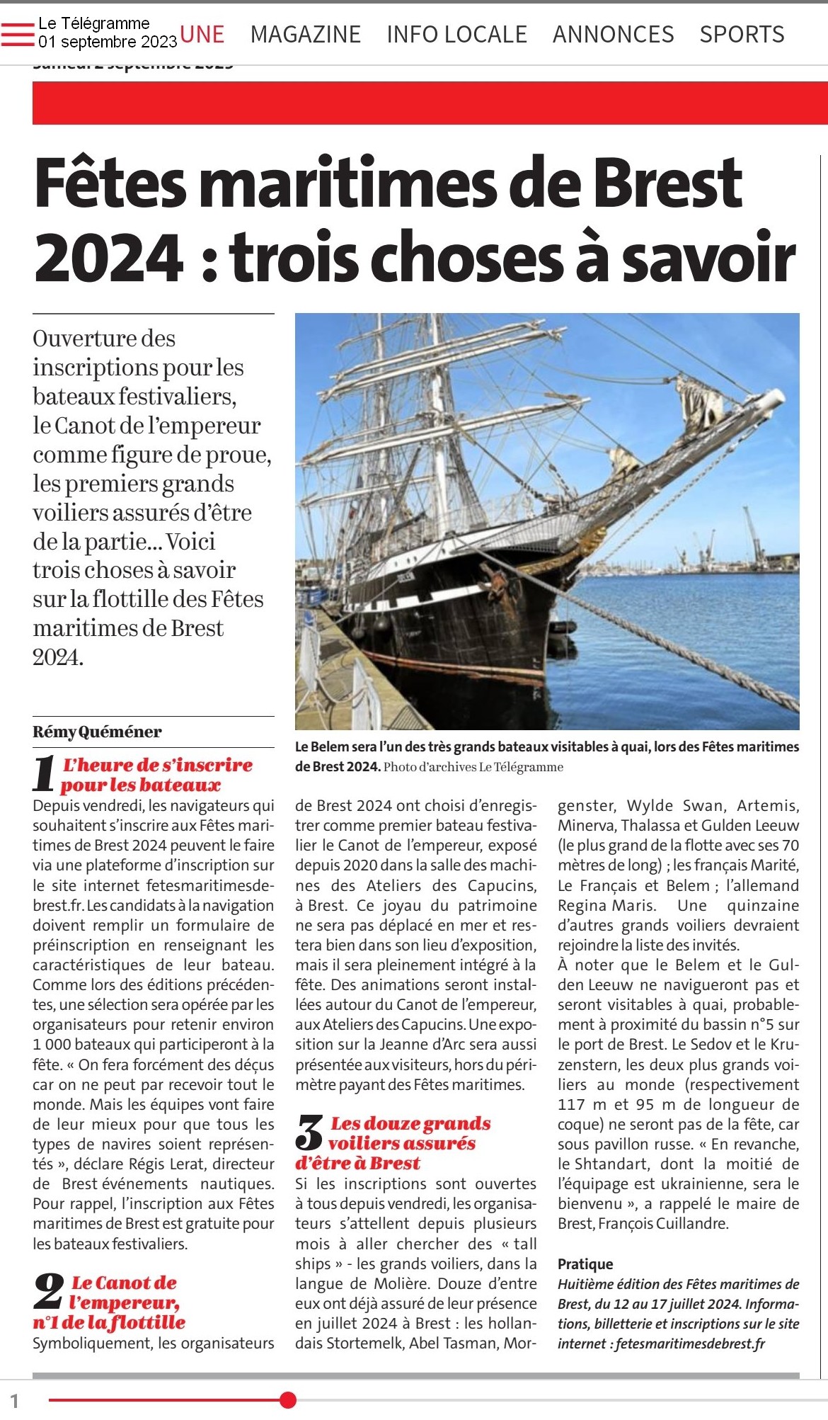 Le lundi 21 août 2023 à 15:42 nous adressions aux quotidiens régionaux Ouest-France et La Manche Libre le courrier envoyé au maire de Granville concernant la prestation commerciale du navire russe Shtandart au « Festival des Voiles de travail ». Nous y rappelions l’interdiction frappant les escales, dans les ports européens, des navires immatriculés en Russie et indiquions les sources russes prouvant les liens de Vladimir Martus, capitaine propriétaire du Shtandart, avec le pouvoir russe.