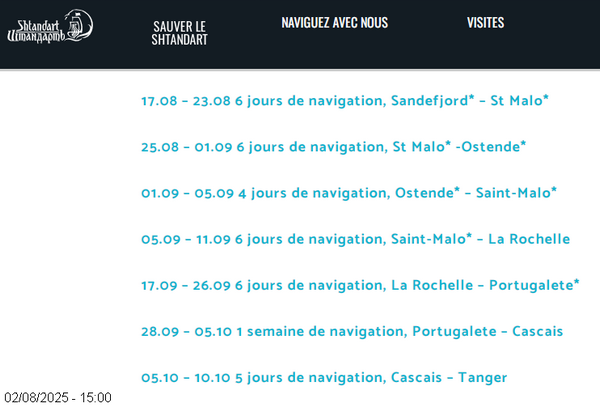 - No Shtandart in Europe, 16/04/2025 – Contradiction et démystification sourcées du mémoire en réplique du navire russe Shtandart au Tribunal administratif de Rennes, attaquant le préfet du Finistère ↩︎