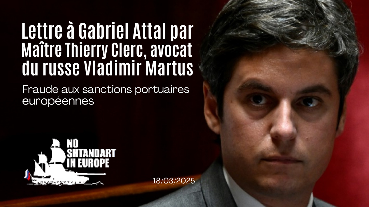 Lettre à Gabriel Attal de la part de Maître Thierry Clerc, avocat du russe Vladimir Martus, contrevenant aux sanctions portuaires européennes, 18/03/2025