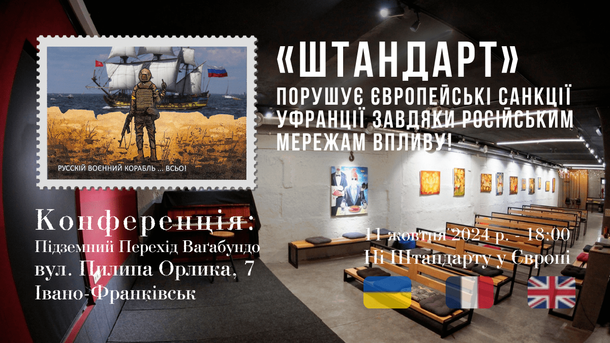 Ми запрошуємо всі українські та дружні до України організації приєднатися до колективної кампанії No Shtandart in Europe, підписавши лист, який буде надіслано Габріелю Атталю, колишньому прем’єр-міністру та голові групи дружби Франція-Україна у Національній Асамблеї Франції. Щоб покласти край обходу європейських санкцій, давайте разом вимагати заборонити російському судну «Штандарт» перебувати у територіальних водах Франції.